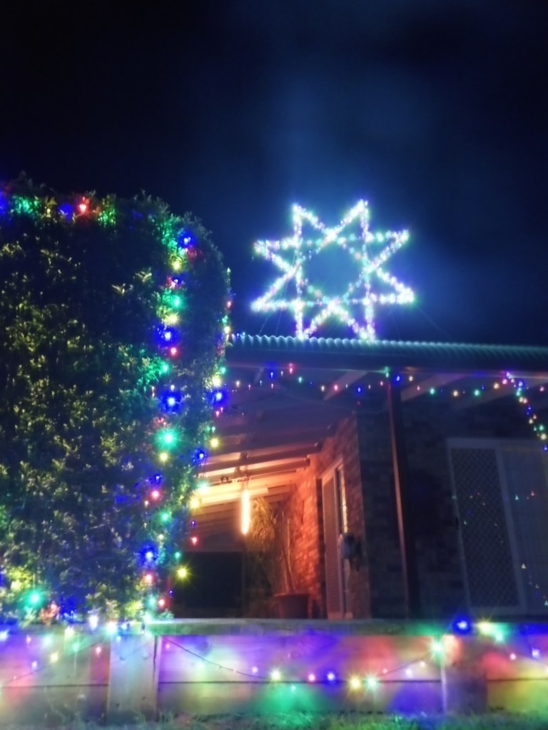 I would like to take this opportunity to wish every reader of this post an extremely Merry Christmas and the most Satisfying New Year. The last couple of years have been trying for all of us and accordingly I wish everyone the happiest future possible. To add to the festive season I have included below a few photos of my efforts to brighten up the world, even if it is only seen in my small local area. While I have put up lights in previous years, this is the first time I have produced cut-out images and flood lit them.